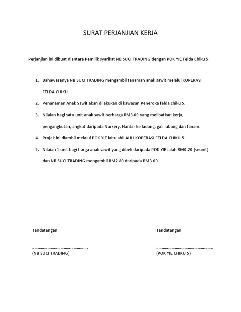 Contoh Surat Perjanjian Kerja Antara Majikan Dan Pekerja Otosection